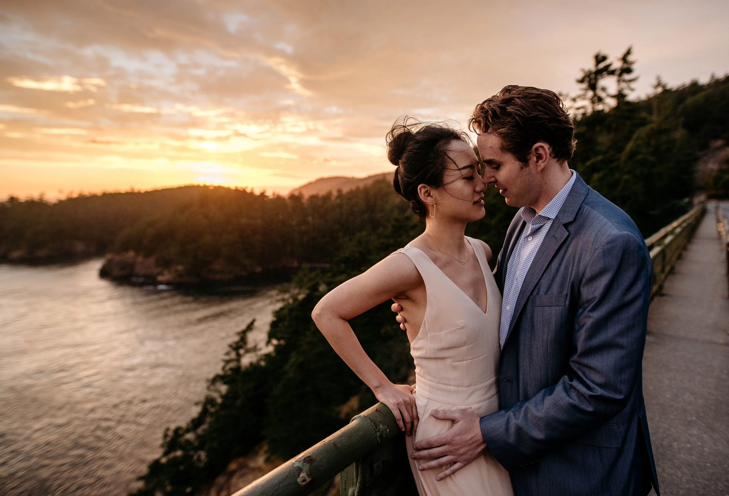 A beautiful sunrise wedding portrait session on San Juan Island. We hiked up to a local lookout, where the couple changed on the hillside before doing their first look together.